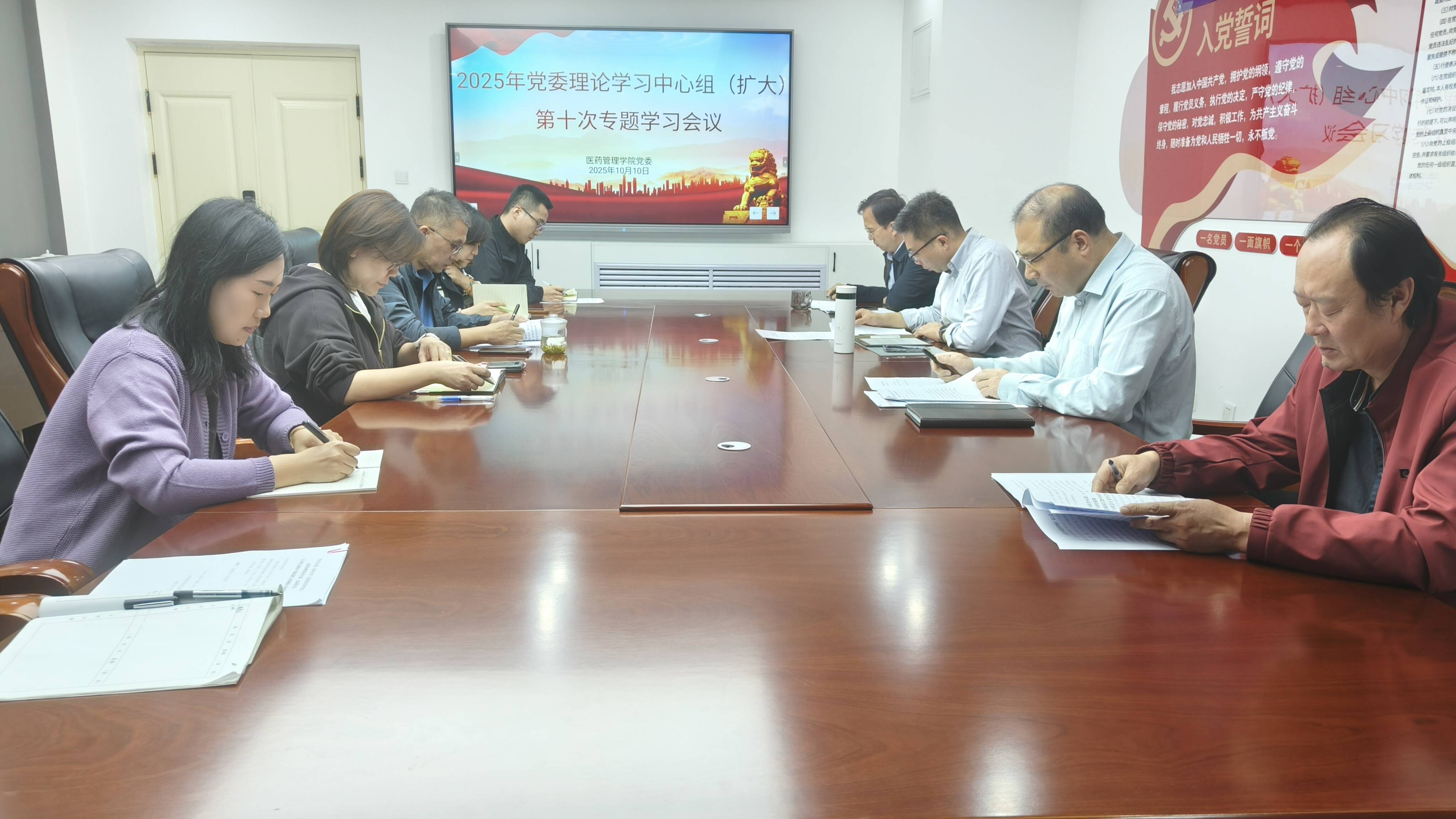 2025年10月10日,医药管理学院举行党委理论学习中心组(扩大)第十次学习会议,集中深入学习《习近平谈治国理政》第五卷和习近平总书记在中共中央政治局第二十二次集体学习时的讲话,会议由学院党委书记苏宝利主持。