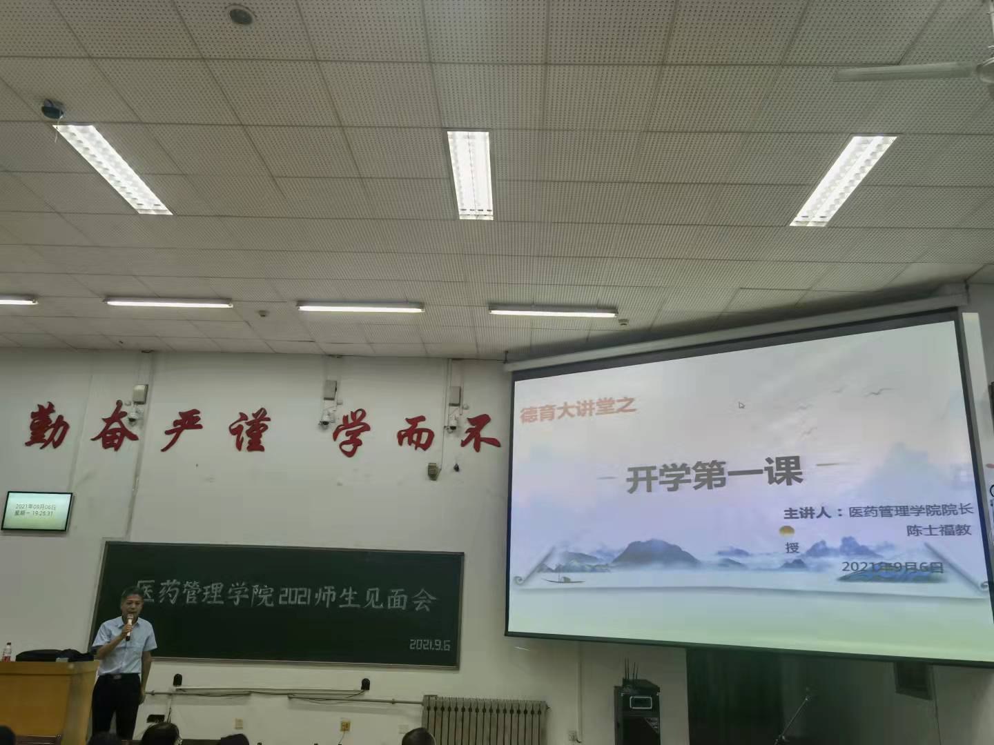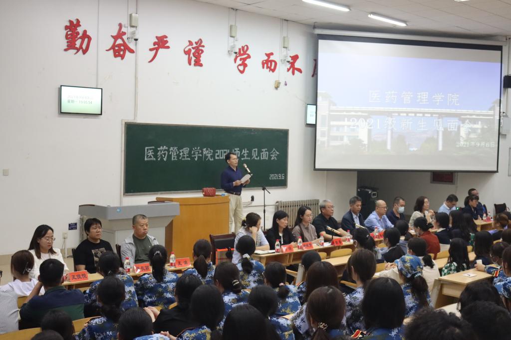 为助力新生适应大学生活、明确学习目标,进一步引导新生树立远大理想、提升综合素质、争做时代好青年,医药管理学院于9月6日晚在教学南楼C2024教室举办了2021级师生见面会。见面会由学院党委副书记胡睿主持。