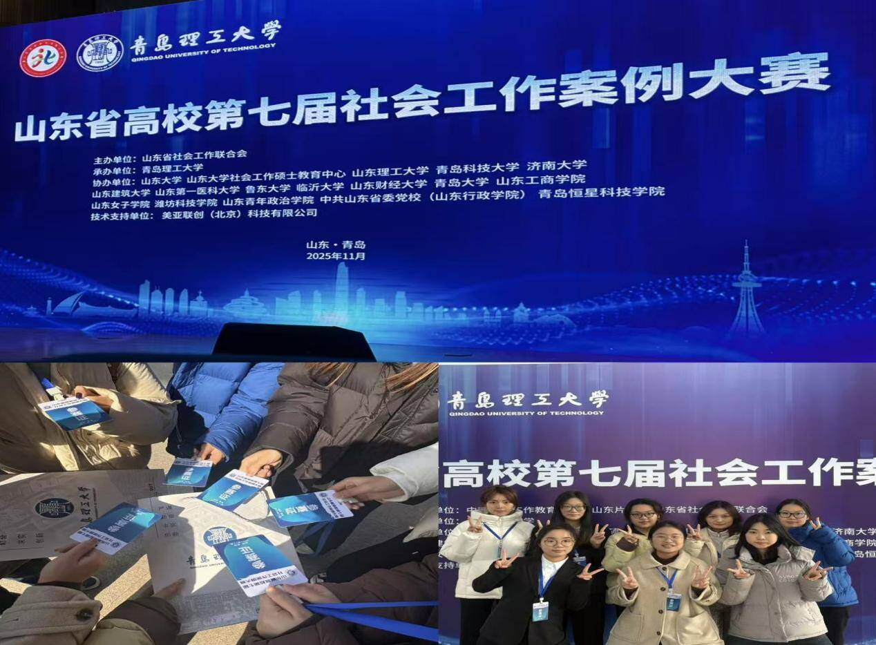 2025年11月29日,由山东省社会工作联合会主办、青岛理工大学承办的山东省高校第七届社会工作案例大赛决赛圆满落幕。本届大赛吸引了来自全省20余所高校的180余支队伍参与,最终98支队伍晋级决赛,赛事竞争异常激烈。经过现场角逐,我院社会工作专业选派的两支代表队凭借扎实的专业素养和出色的现场表现,分获大赛一等奖和三等奖,吴燕老师获“优秀指导教师”称号。