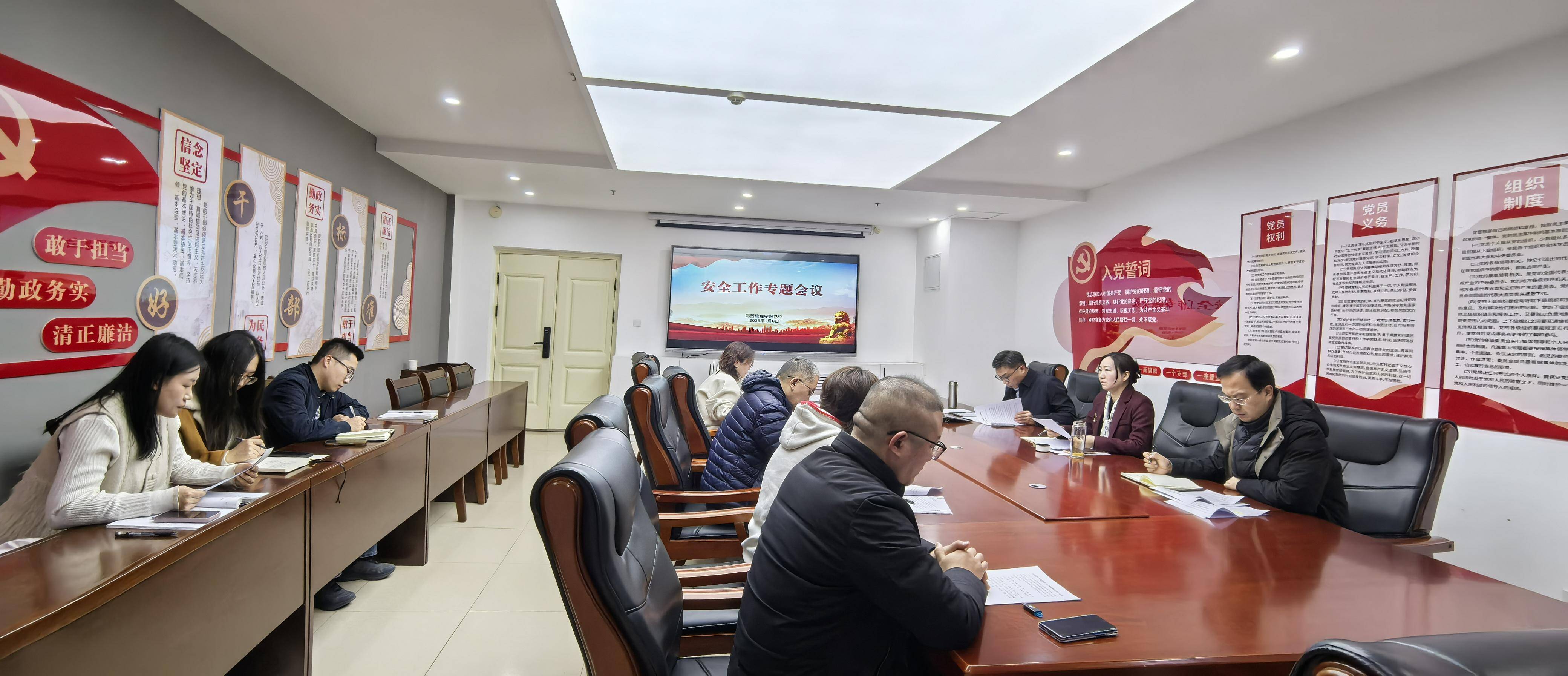 为深入贯彻落实校(院)2026年安全工作会议精神,扎实筑牢校园安全防线,1月7日,医药管理学院召开安全工作专题会议,全面分析研判学院当前安全稳定形势,系统部署下一阶段安全稳定各项工作。学院党委书记孙琳婧出席会议并讲话,副院长(主持行政工作)钟宁主持会议,全体教职工参加会议。