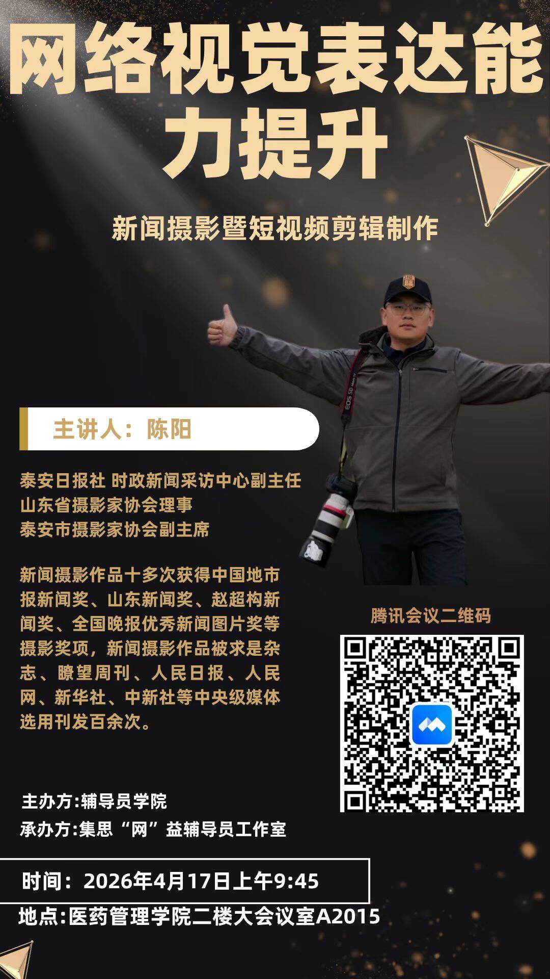 首期活动预告如下图所示,泰安校区的辅导员及同学可现场参与,济南校区的辅导员及同学可通过腾讯会议线上参与,教研室将依据签到情况核算学分。