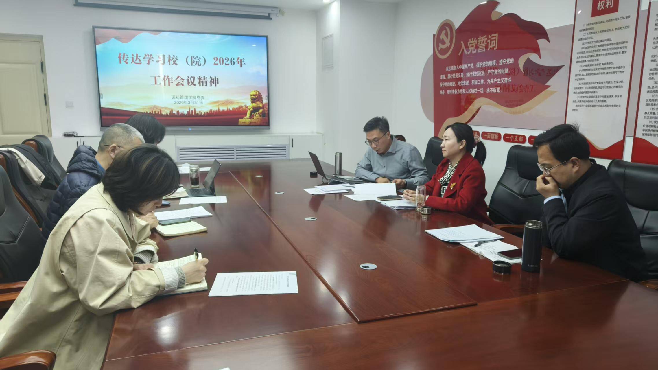 为全面传达落实校(院)2026 年工作会议精神,紧扣校(院)“十四五” 收官、“十五五” 谋篇布局的总体部署,锚定“双一流”创建目标,着力做好2026年十大重点工作任务,切实把校(院)党委各项决策部署转化为学院具体行动。近日,医药管理学院召开 2026 年工作计划部署会议,学院领导班子成员、各科室负责人参加会议,会议由副院长(主持行政工作)钟宁主持。